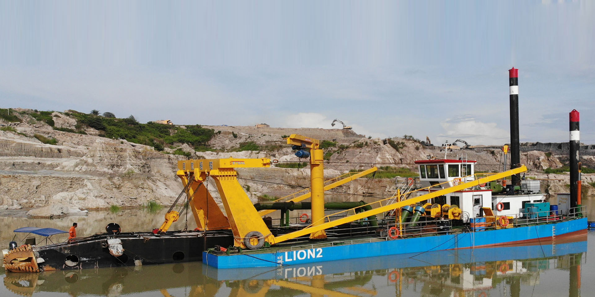 濰坊東洋海科重工建造的4000流量全電動(dòng)水下泵絞吸船服務(wù)馬來西亞錫礦治理項(xiàng)目現(xiàn)場